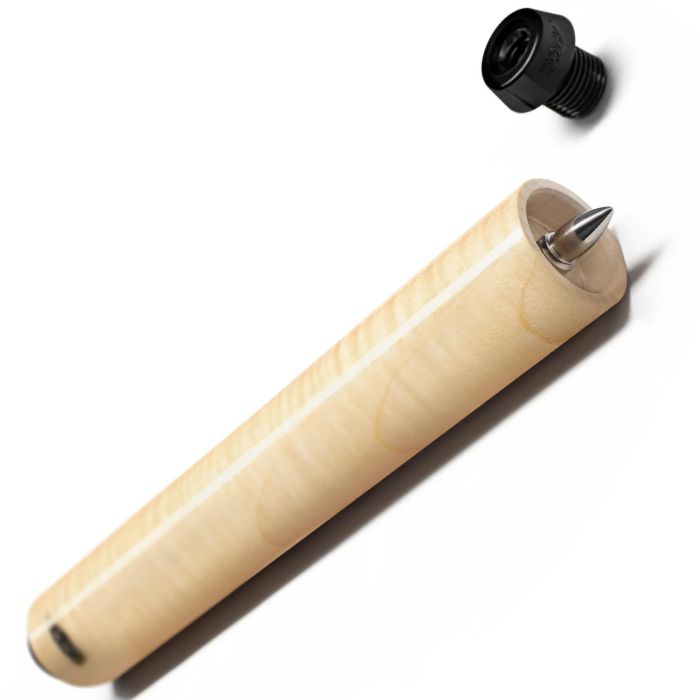 QR Extension2はUni-Loc®ウェイトカートリッジシステムを搭載したすべてのPredatorキューと組み合わせ可能。 一旦設定完了してしまえば、エクステンションハンドルをひとひねりするだけで、バット長を延長することができる。既存のラバーバンパーを取り外し、6mm径の六角レンチを使って専用バンパーを取り付け、QR Extension2をねじ込む、以上で準備は完了だ。